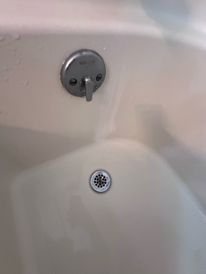 bath tub drain replacement. bath tub drain repair. bath tub drain leak. new waste and overflow assembly. tub trip waste and overflow replacement. leak through ceiling. bathroom plumbing repair. PlumbPRO Services. Horsham, PA.